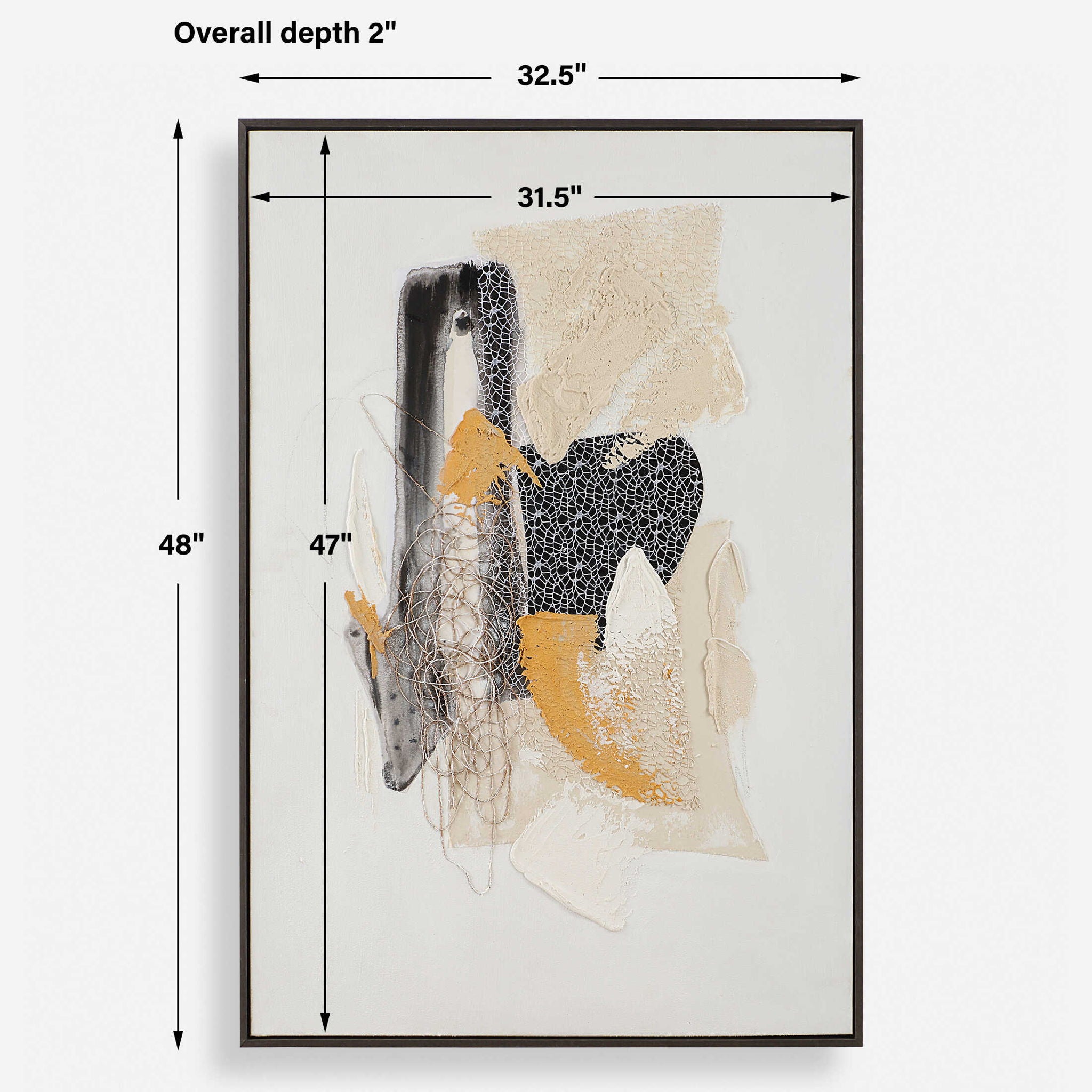 Scatter Hand Painted Canvas Is A Captivating Abstract Mixed Media Artwork Featuring Deep Shades Of Ink Black And Contrasting Taupe, Highlighted By Gold Leaf Accents. A Slim Gallery Frame In Matte Black Finish Completes The Piece. Due To The Handcrafted Nature Of This Artwork, Each Piece May Have Subtle Differences. May Be Hung Horizontal Or Vertical.