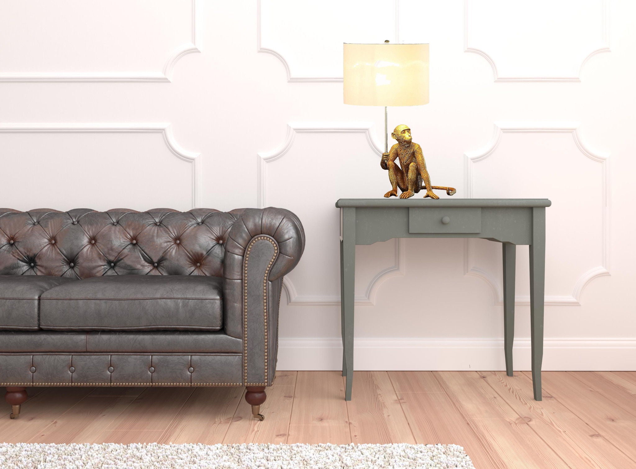 Sitting Monkey Table Lamp With White - Antiqued Gold