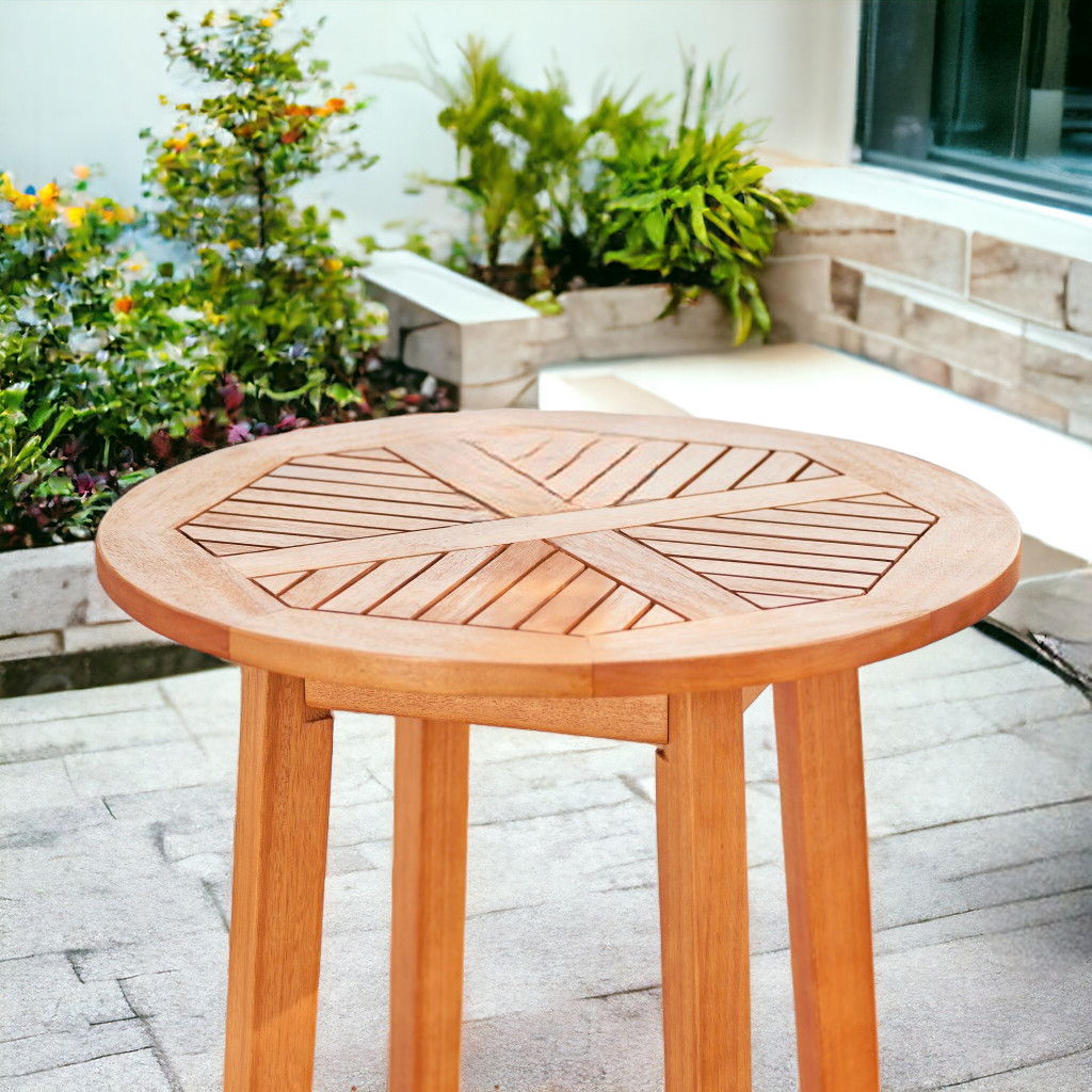 Slat Wood Outdoor Round Bar Table - Natural Eucalyptus