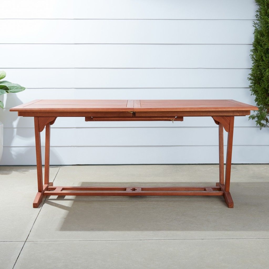 Solid Wood Extendable Outdoor Dining Table With Umbrella Hole - Brown
