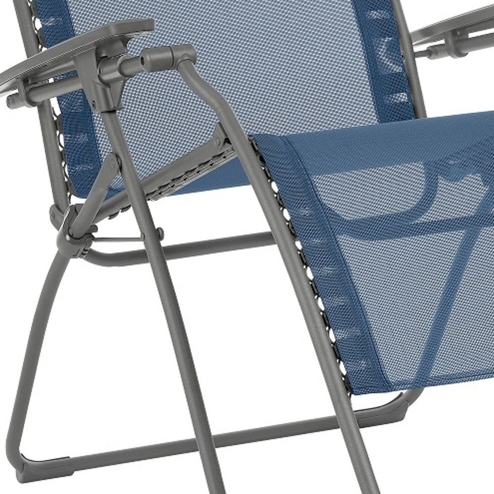 Steel Outdoor Zero Gravity Chair With Blue Cushion - Blue And Gray