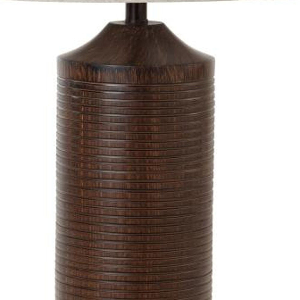 • Modern table lamp with a brown base and beige shade.