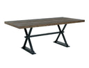 Trestle Dining Table. Elevate your dining experience with the Town Dining Collection, a perfect blend of rustic charm and modern elegance. This table features a beautifully crafted pine and poplar wood tabletop with a wire-brushed finish, adding texture and character. The sturdy metal base with a powder-coated matte finish ensures durability. The rustic wooden top and the elegant trestle metal base make this table both functional and stylish. Experience the timeless beauty and exceptional craftsmanship of the Town collection's Dining set and let it become the centerpiece of your dining room.