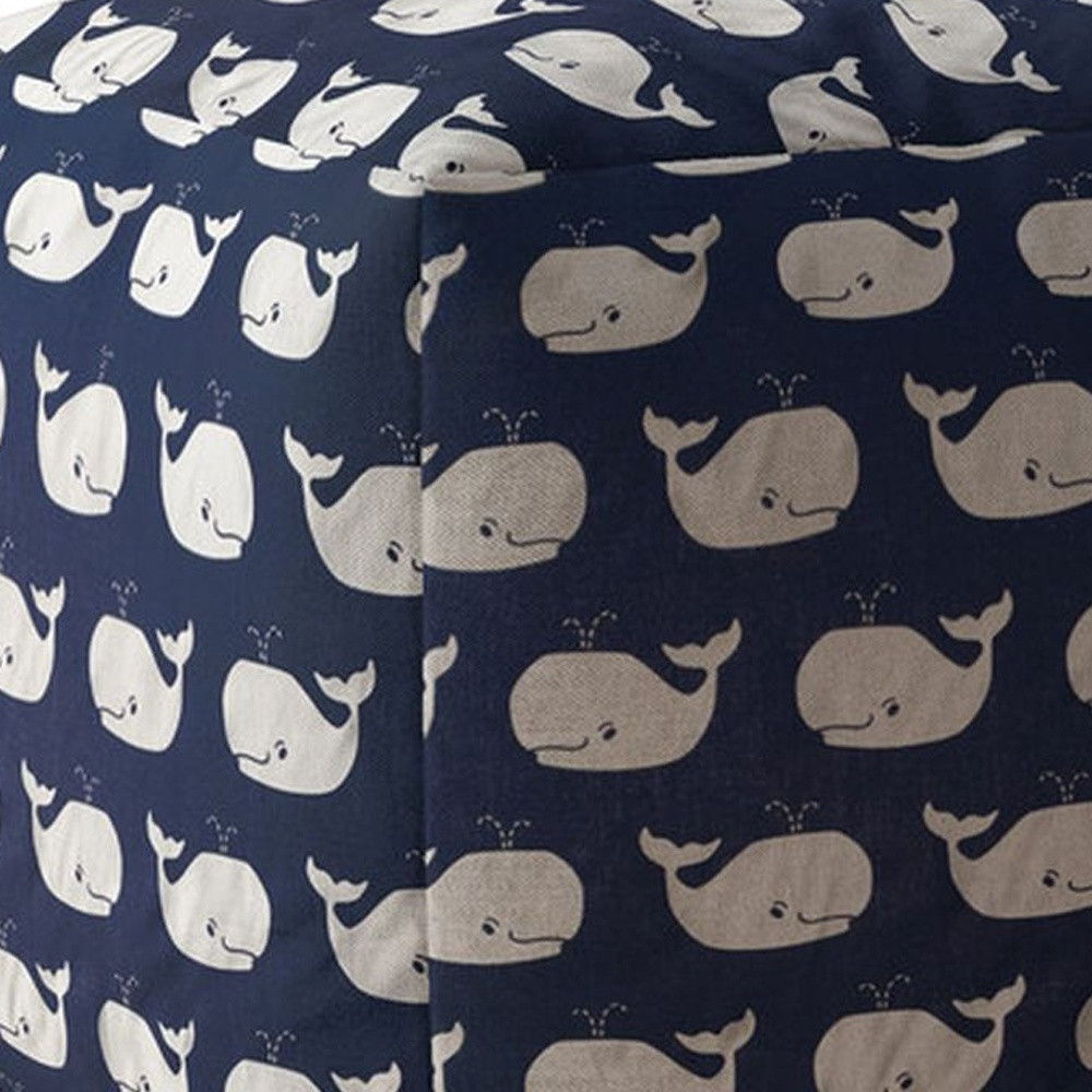 Optimize your space and add some charm to your room with the 17" blue twill whale pouf cover. Expertly upholstered with padding and soft twill in a whale pattern, this ottoman is as comfortable as it is good looking. Ottomans are multi-functional additions to your space that add fashion and practical value. 17" H x 17" W x 1" D