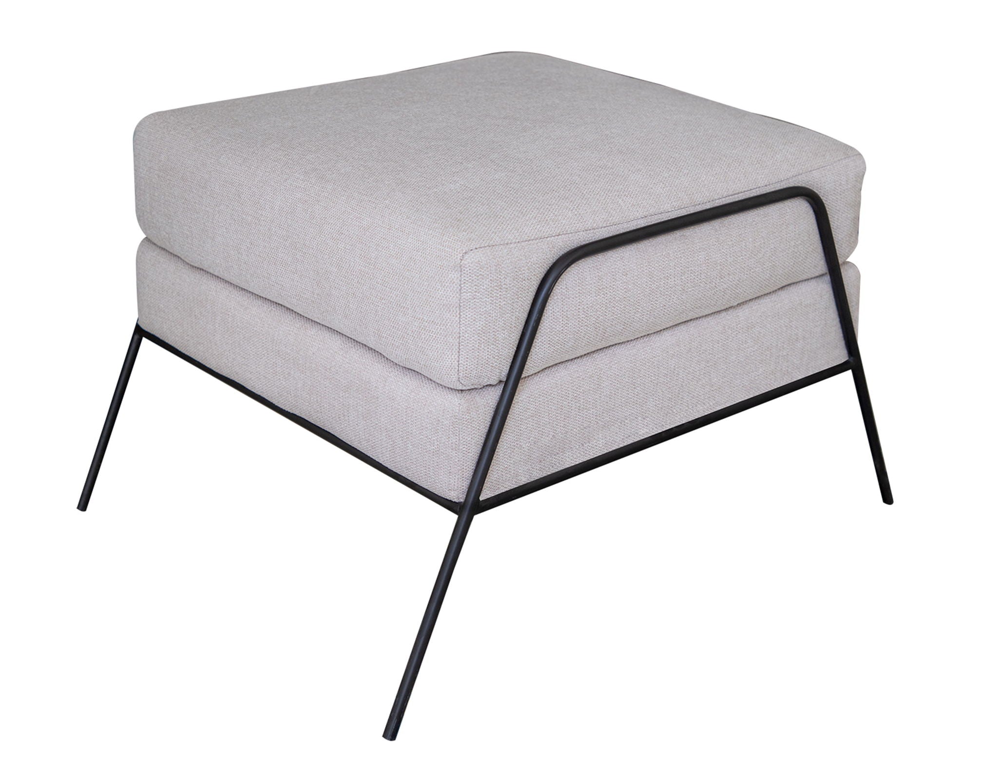 Wooden Frame & Metal Base, Footstool Ottoman. This understated ottoman brings a stylish and functional design to your living room or bedroom. The solid wood frame is wrapped in polyester in your choice of color, and it's accented with metal legs. This square ottoman is filled with foam and sinuous springs for cushioned support while you sit down or kick up your feet.