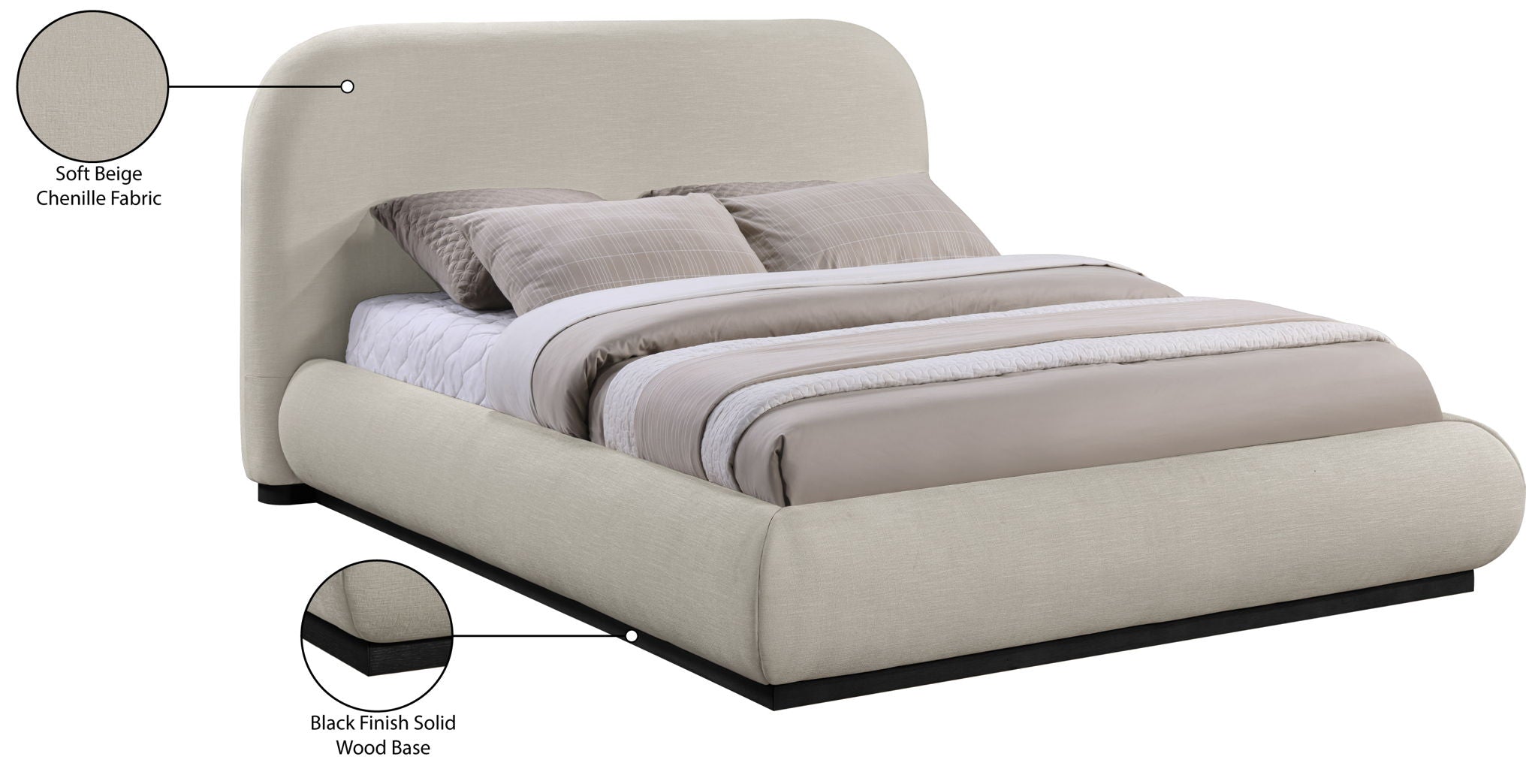 Vaughn - Chenille Queen Bed With Black Base - Beige