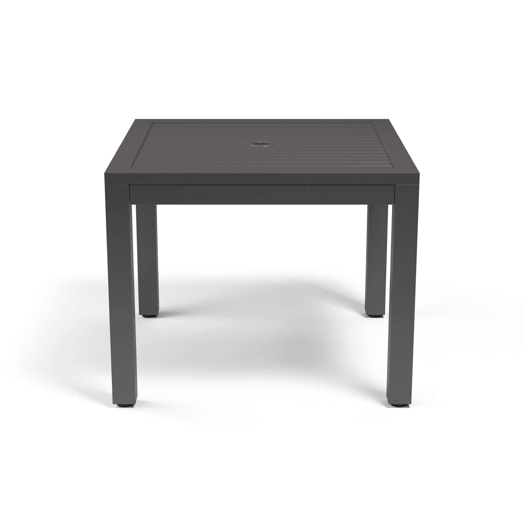 The Vegas Collection offers ease of outdoor dining and entertainment with its low maintenance sling and aluminum frame. The Vegas DiningTable is crafted in a scratch resistant Graphite finish, on a powder-coated aluminum frame and features a slate table top and umbrella hole. Umbrella Hole Some Assembly Required Vegas is a part of the Stone color story, and blends well with Mesa, Majorca, and Marbella.