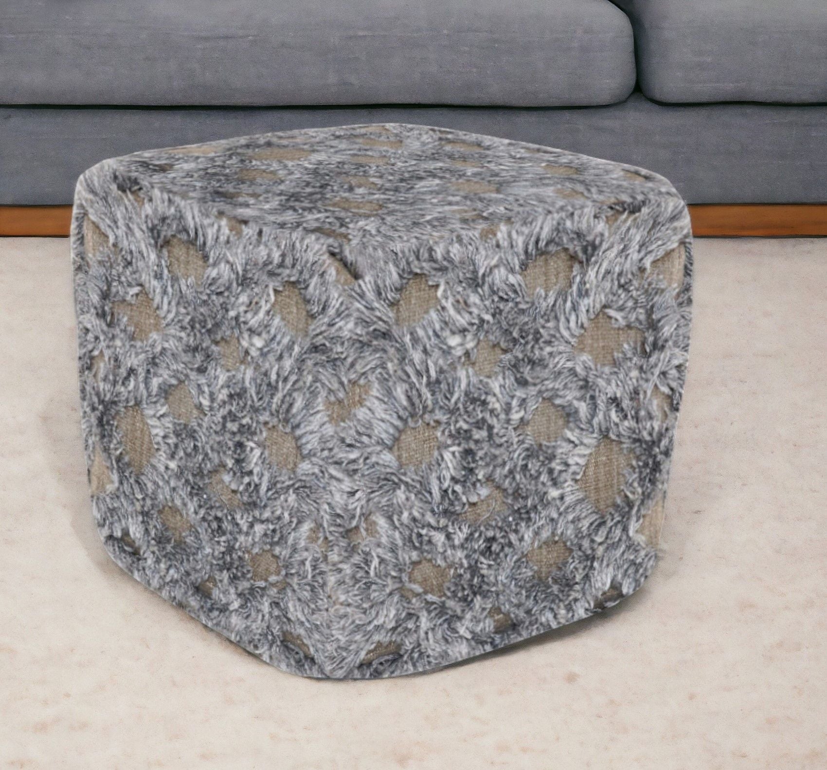 Wool Cotton Blend Cube Geometric Pouf Ottoman - Natural And Gray
