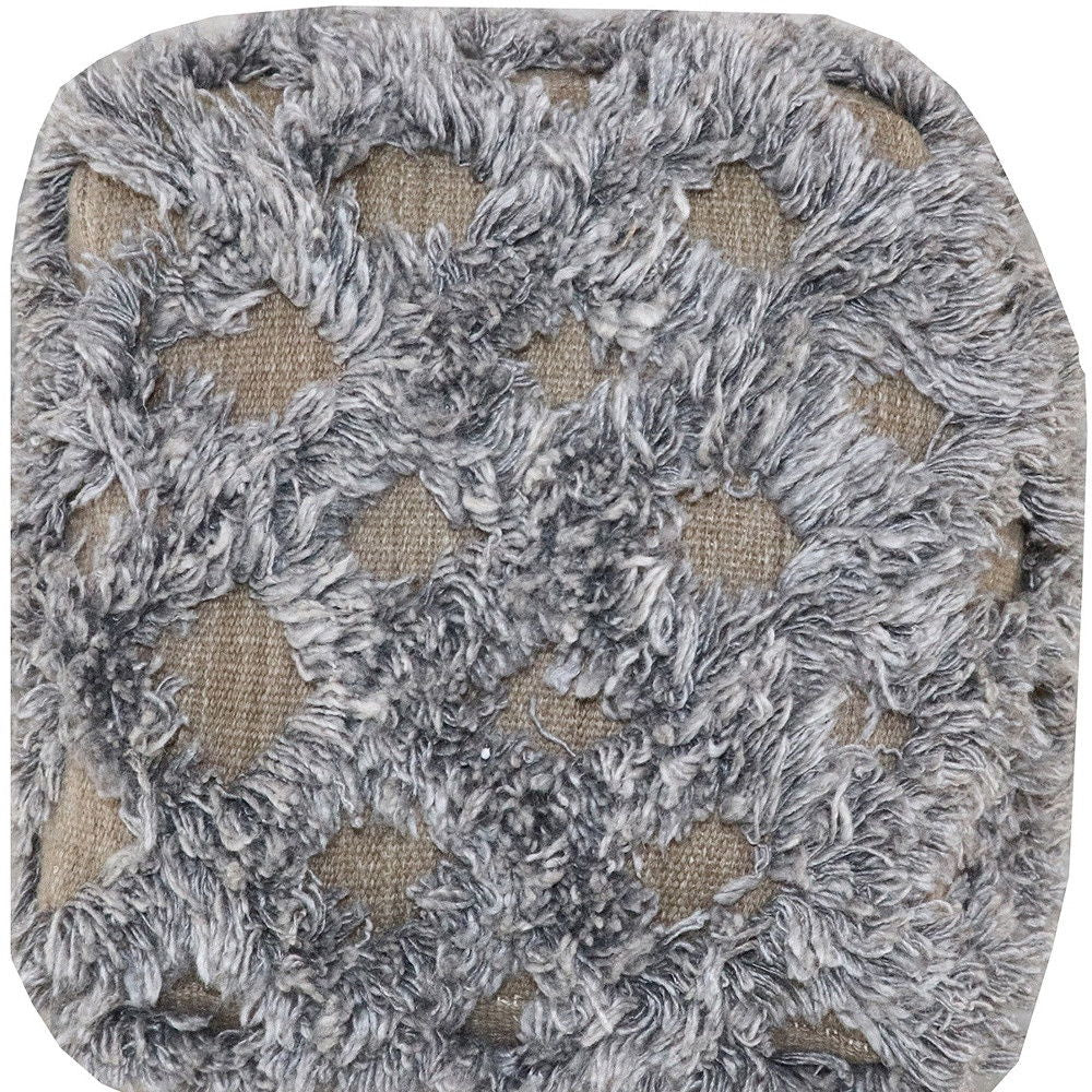 Add a good looking decorative accent to your space that is also practical for seating. Add chic style to your space with this fun pouf that not only looks cool but can be a great foot rest or extra seat when needed. Expertly upholstered with padding in a soft wool cotton blend in a geometric pattern, this ottoman is as comfortable as it is good looking. Easy to blend into most any room, a ottoman is a way to add a good looking accent to your space that can also be practical and useful. 18-inch H x 18-inch W x 18-inch D
