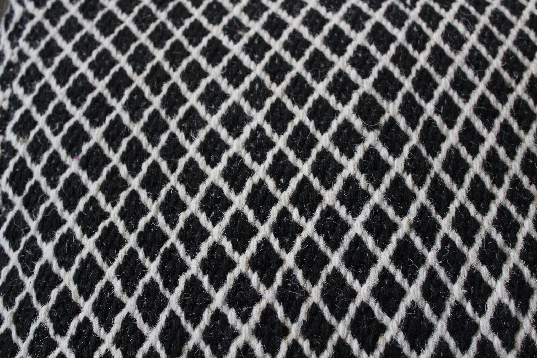 Practicality and fashion mix together with this handy 18-inch black and ivory wool cube geometric pouf ottoman. Add chic style to your space with this fun pouf that not only looks cool but can be a great foot rest or extra seat when needed. Expertly upholstered with padding and soft wool in a geometric pattern, this ottoman is as comfortable as it is good looking. Easy to blend into most any room, a ottoman is a way to add a good looking accent to your space that can also be practical and useful. 18-inch H x 18-inch W x 18-inch D