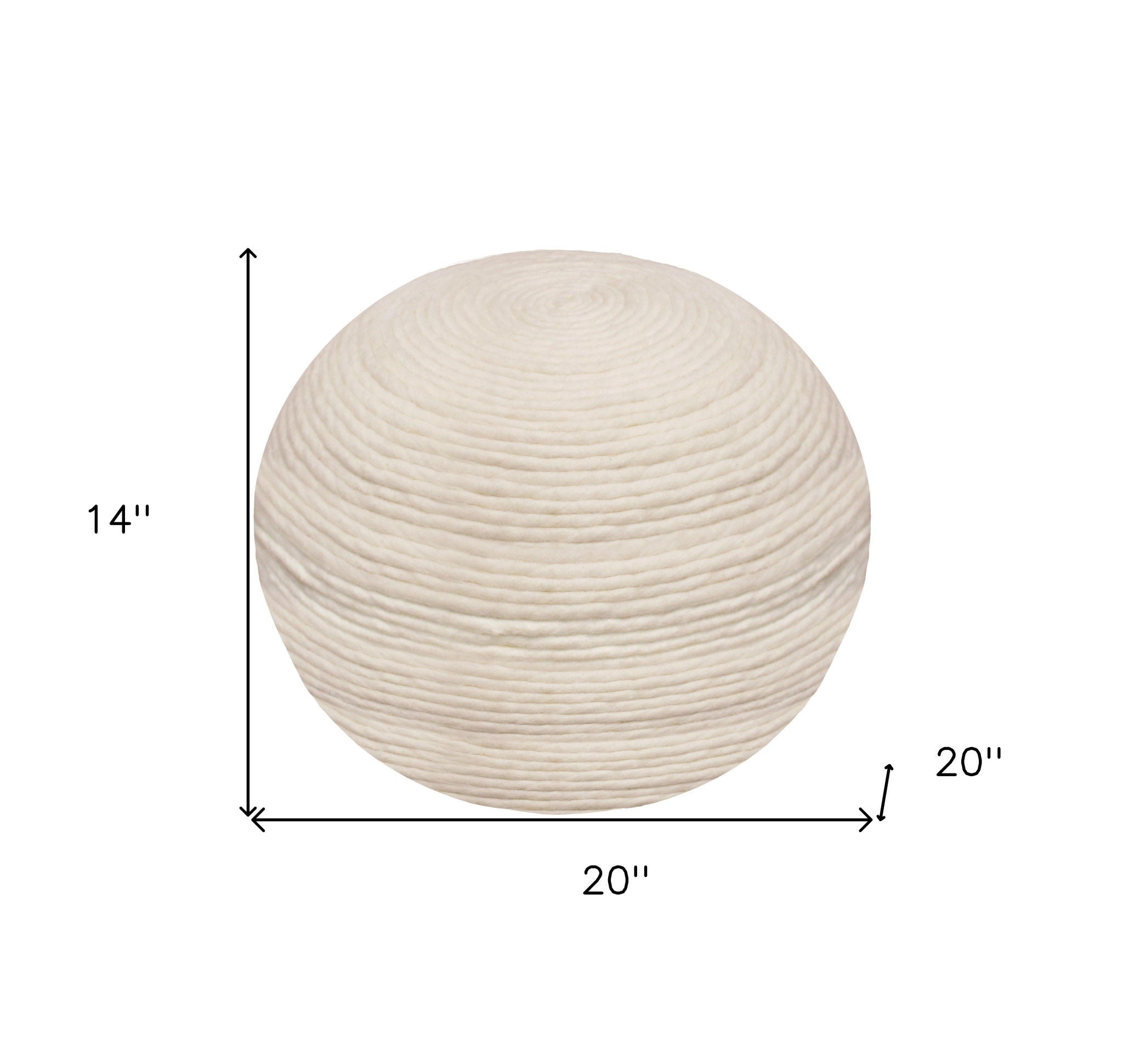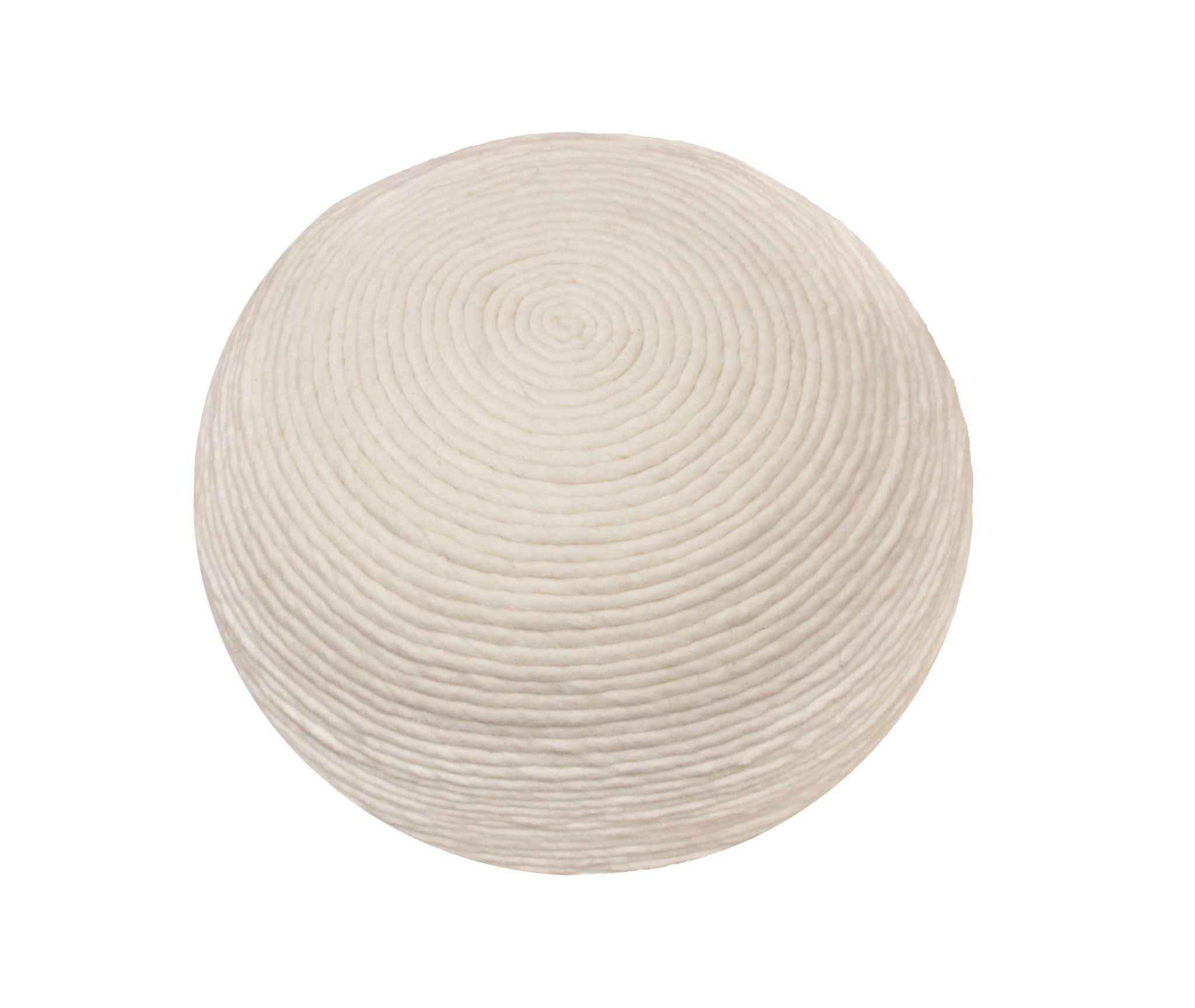 Wool Round Ribbed Pouf Ottoman - Ivory