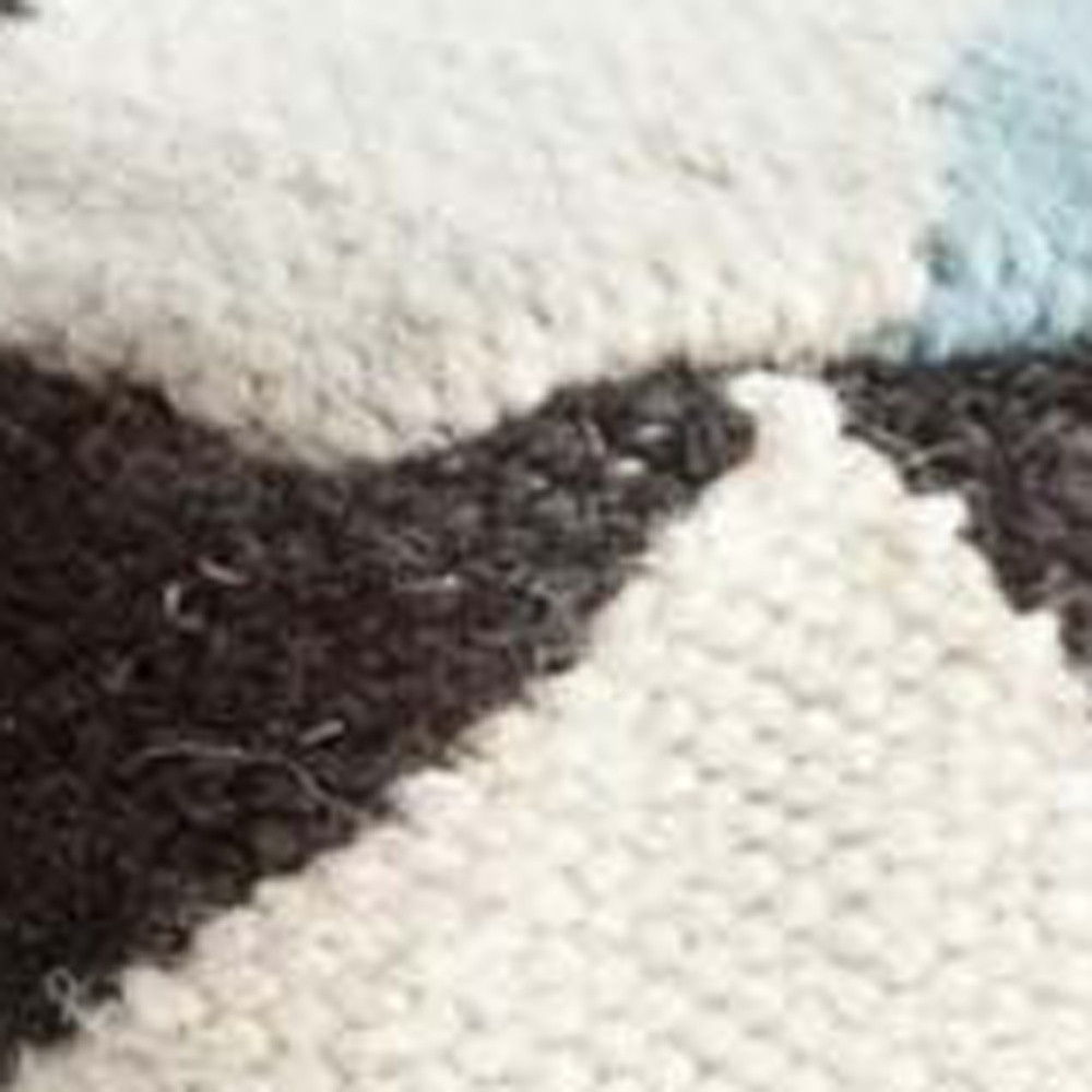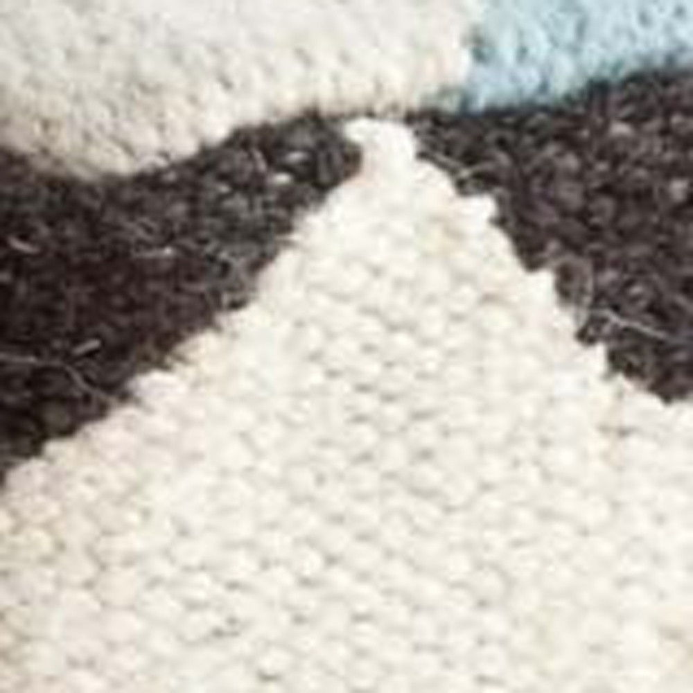 Wool Square Pouf With Zig Zag Pattern - Ivory / Charcoal